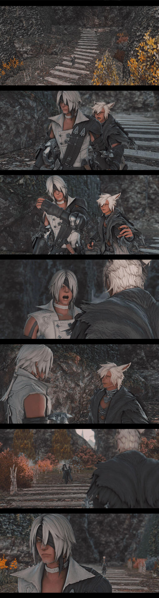 "How does yourrr treatment of Minfilia count as closure!? Just how long do you plan to wallow in complete denial!? I lost my entire family to the empirrre as a child. I grieved. I coped.You once said "Learn to live with it. I have."